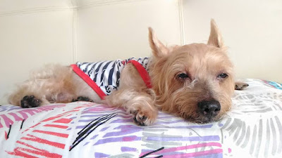 Last evening after my meal and treats, I initiated playing fetch with mom! I could even run* like Bolt whoahahaha... but it was just a short session. Usually that's how I play, kind of like starting with fully charged battery at 100% then it just dropped to 50%...40% so this old creaky bone has got to stop and rest. But mom was happy that at least I was 'in the mood' to play.